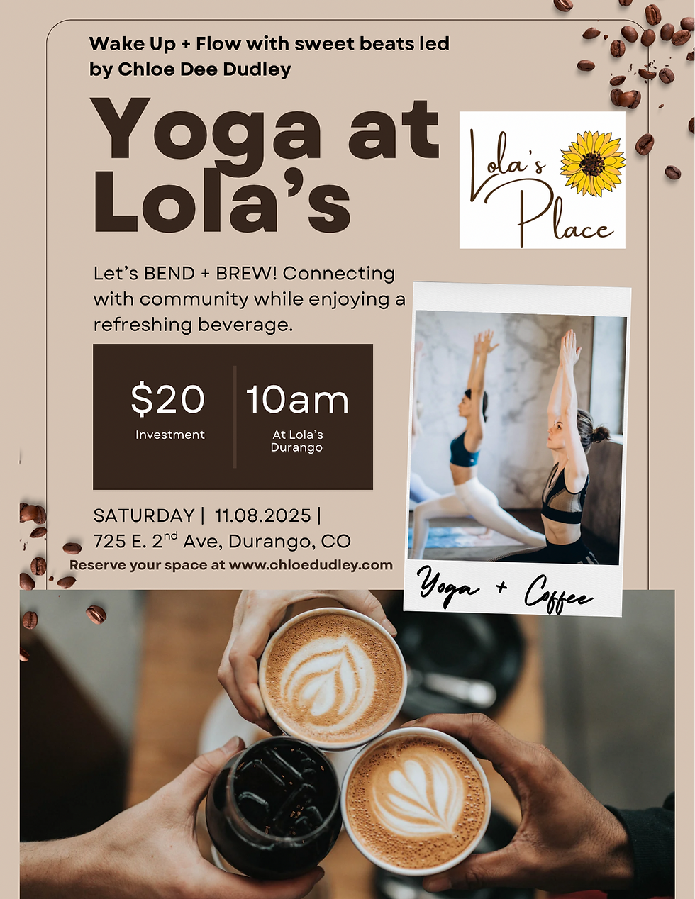 Currently, Chloe enjoys practicing with Teachers in her local Durango Community at The Sweaty Buddha, and learning so much from Nicole Sexson Gritis.